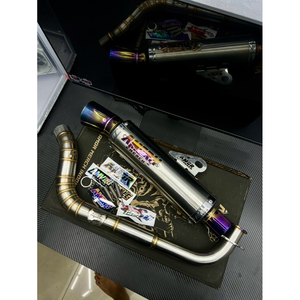 (Grade A) Knalpot Amor Merch Tipe Amviby Style Golden Blue V2 Racing