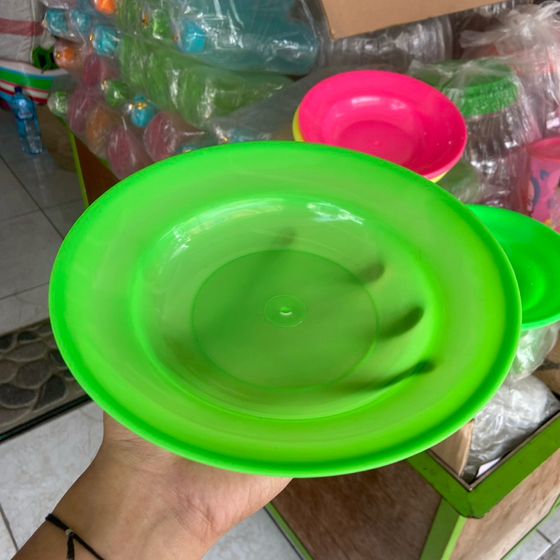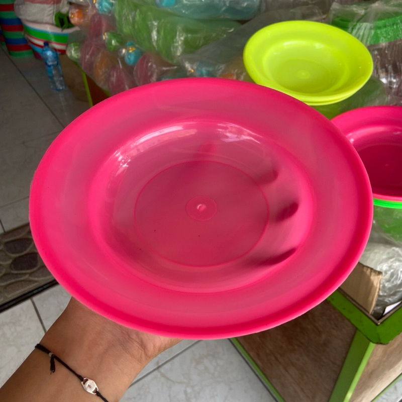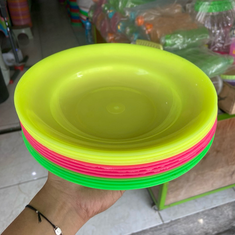 12 PCS!! PIRING PLASTIK 9 WARNA STABILO / PIRING MAKAN / PIRING IKAN / PIRING HAJATAN / PIRING PLASTIK / PIRING WARNA /