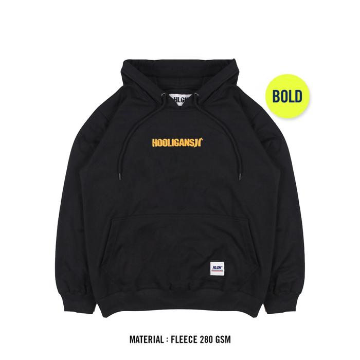FLASH SALE HOOLIGANS HOODIE BOLD SPEZIALE 221 BLACK CASUAL HITAM PRIA FLEECE NYAMAN S, HITAM