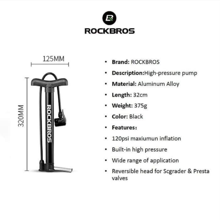 FLASH SALE ROCKBROS POMPA SEPEDA 120 PSI A320 BICYCLE PUMP BOLA MOTOR PRESTA SCHRADER ALUMINIUM ALLOY PORTABLE OUTDOOR BLACK