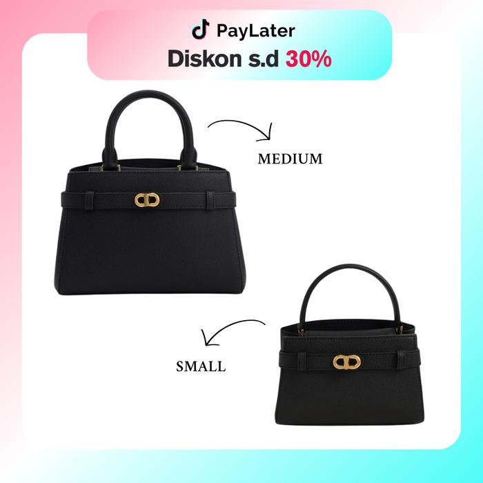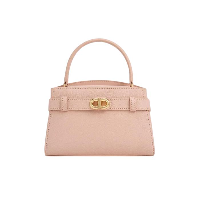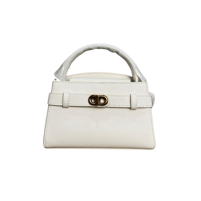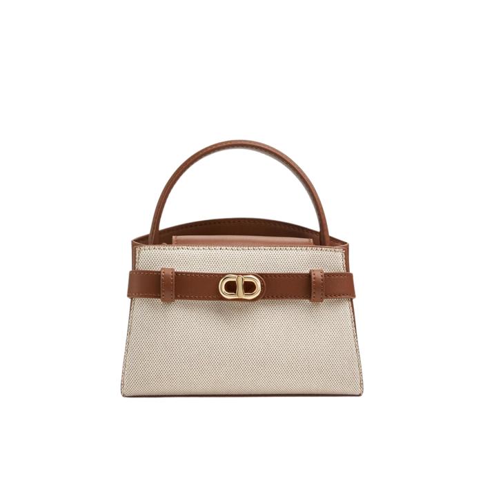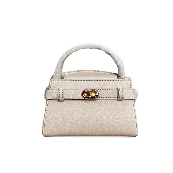 [Free Paperbag] Aubrielle Metallic-Buckle Top Handle Bag Kulit Jastipan.Th - Taupe Canvas, Small