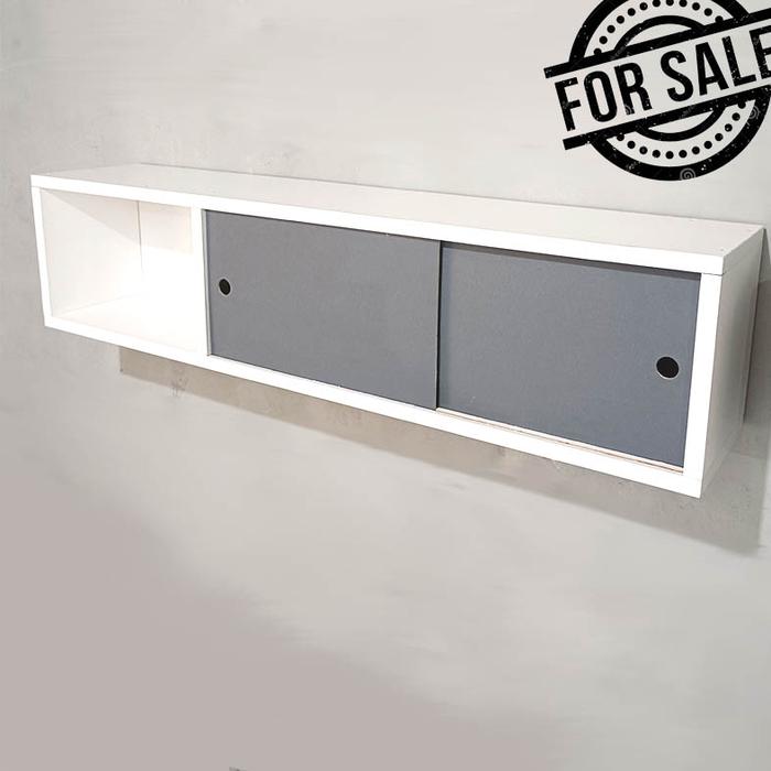 TERLARIS KABINET DINDING KAYU KABINET TEMPAT PENYIMPANAN PANJANG 100CM PUTIH ABU