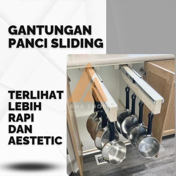 TERLARIS GANTUNGAN PANCI TARIK DORONG 40CM HAFELE PAN SLEDING PERALATAN DAPUR 6 HOOK HANDMADE 100 PERSEN ORI PUTIH