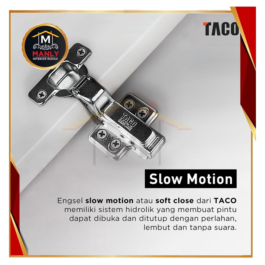 Engsel Slow Motion Taco ET-01 35 MM Zinc Alloy (Chrome) Hydraulic Hinge isi 1 Pasang..