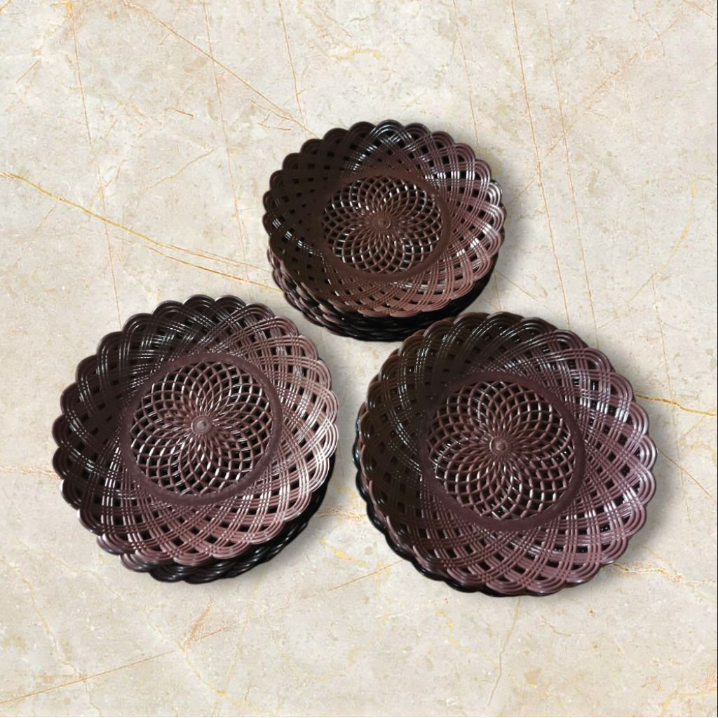 piring rotan plastik warna coklat(24 pcs) 2 lusin