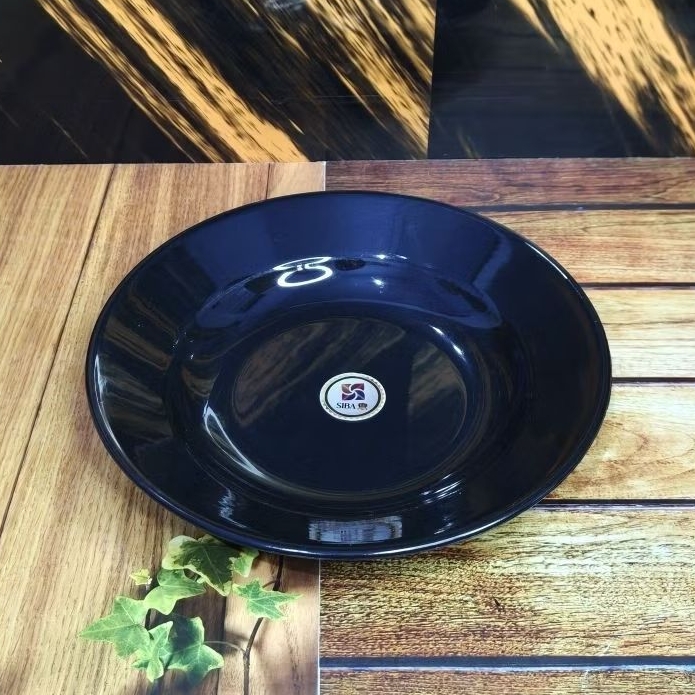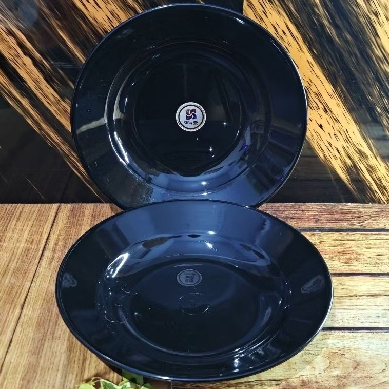 PIRING PLASTIK SEMI MELAMIN 1 LUSIN {12 PCS} BERKUALITAS WARNA HITAM
