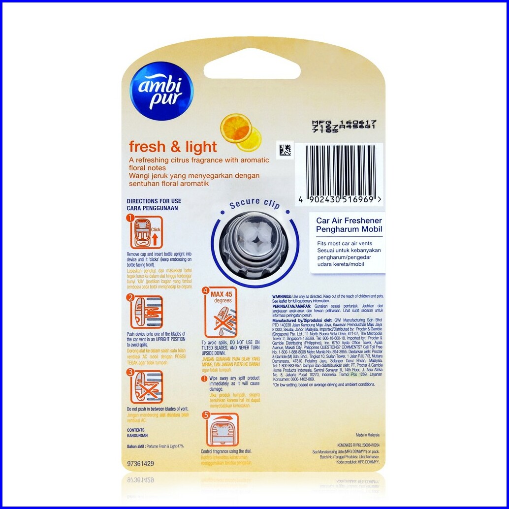 Ambi Pur Pengharum Mobil Premium Clip Fresh Light Starter Kit 7.5 Ml