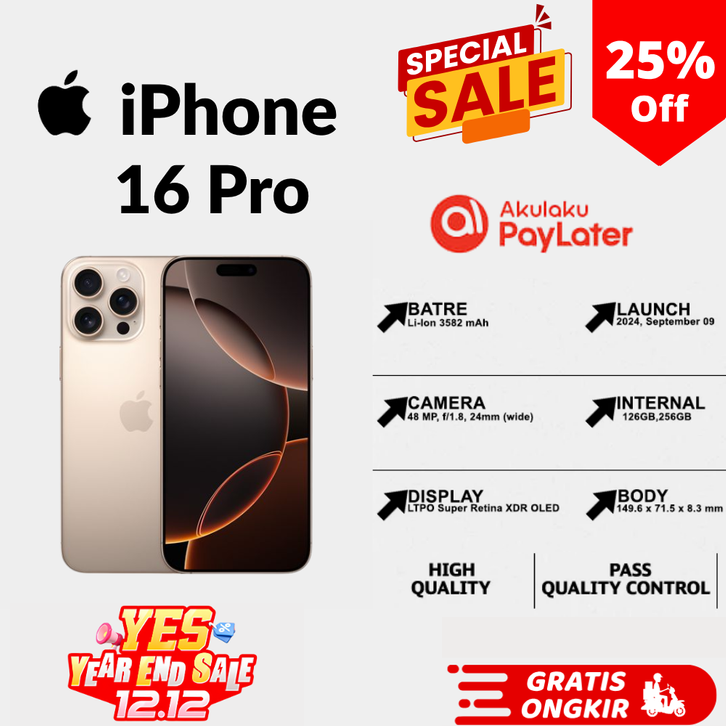 iPhone 16 Pro Second Original Fullset Mulus Like New IP 16 Pro 128GB All Operator Normal Good Condition Bergaransi