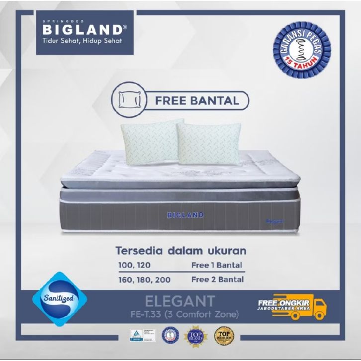Bigland Kasur Springbed Elegant (FOAM ENCASED) - Kasur saja/SET - FREE BANTAL