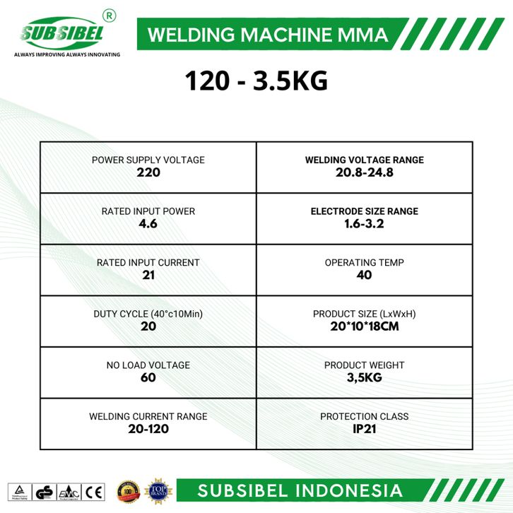 MESIN LAS LISTRIK MMA 120WATT - 3,5KG - SubssIBEL INDONESIA BY ORIGINAL PRODUCT