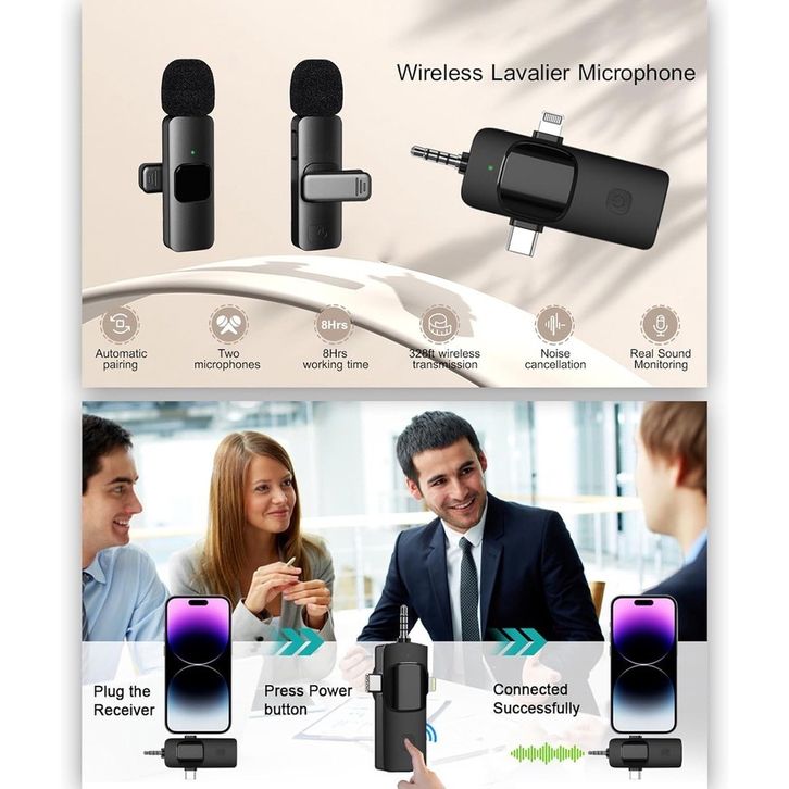 TOOREA Profesional 3 in 1 Mikrofon Nirkabel Untuk iPhone & Type-C & 3.5mm Nirkabel Lavalier Mikrofon Clip on Mic 2.4G N