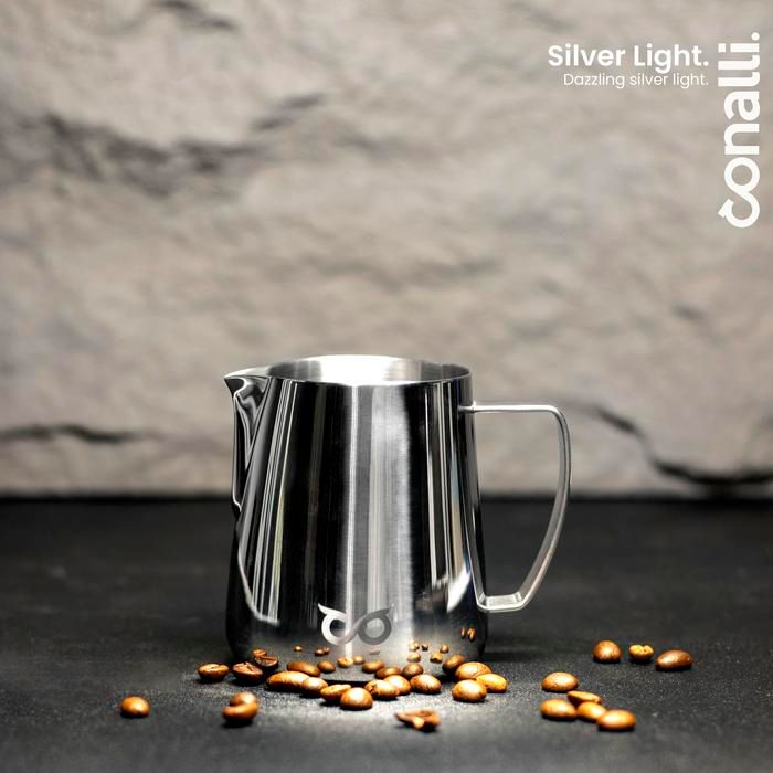 Conalli Cigno Milk Jug Latte Art 350ml - Jug Susu Barista Lancip Sharp Jug - Silver Light