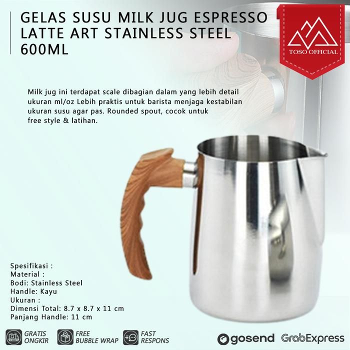 Milk Jug Espresso Latte Art Gelas Takar Susu Kopi 600ml Wood Handle