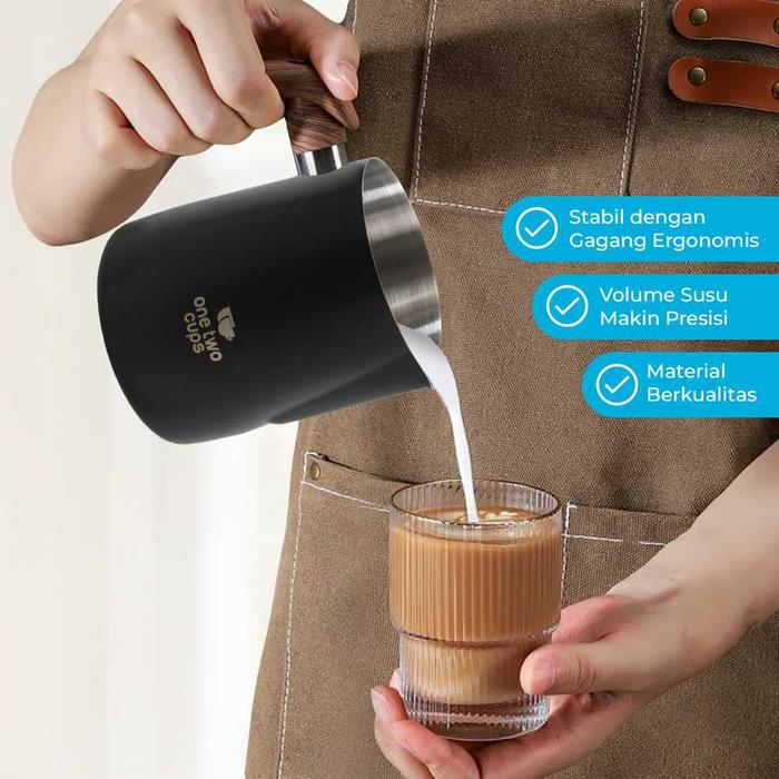 One Two Cups Gelas Milk Jug Latte Art Stainless Steel with Scale 600ML- LS9