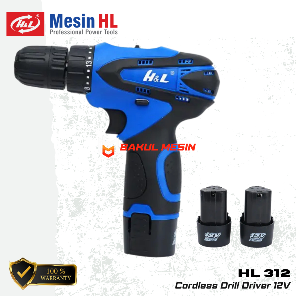 H&L HL 312 Cordless Drill Drill Driver Mesin Bor Baterai 12V Set HL312