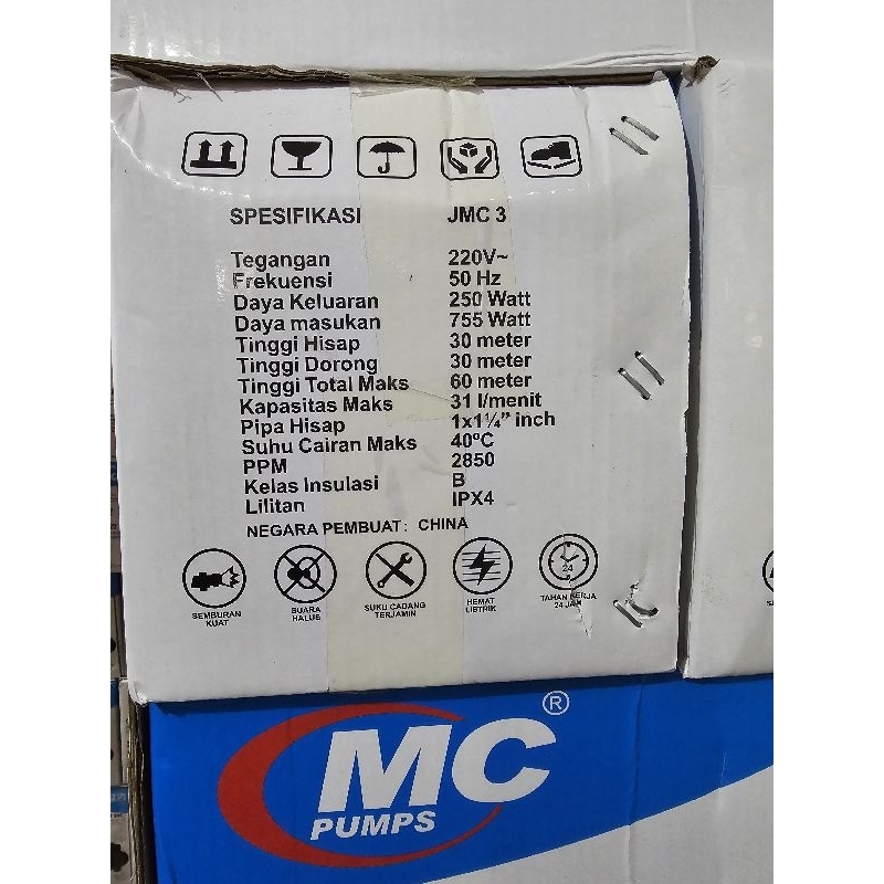 pompa air sumur dalam 250watt jet pump nasional MCPUMP DP 255 JMC3 tanpa tabung