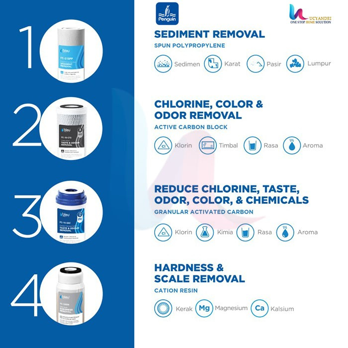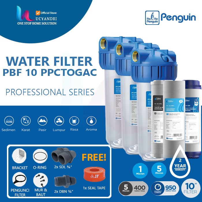 PAKET FILTER SARINGAN AIR Tanah/Sumur Kotor PENGUIN PP CTO GAC PRO