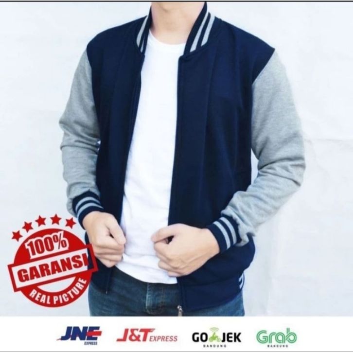 TERMURAH Jaket Baseball Navy Abu Katun Fleece Wanita & Pria ihefl