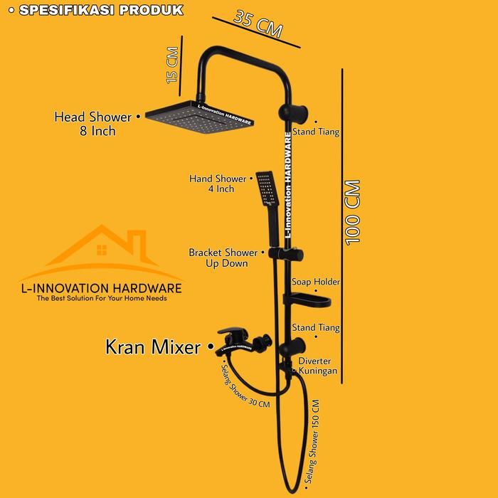 Shower Column Tiang Set Kran Keran Air Panas Dingin Kuningan Black