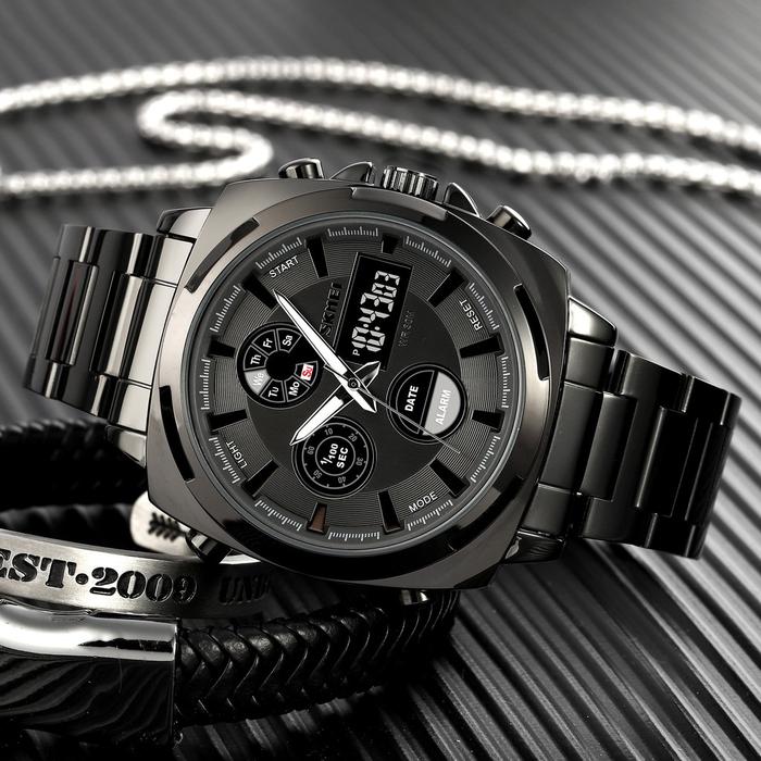 Jam Tangan Pria Digital Analog Stainless Chronograph Dual Time Anti Air SKMEI 1673