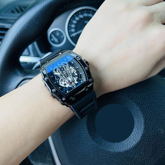 SUNLIFEX Jam Tangan Pria Square Kalender Tali Silikon Bercahaya Kuarsa