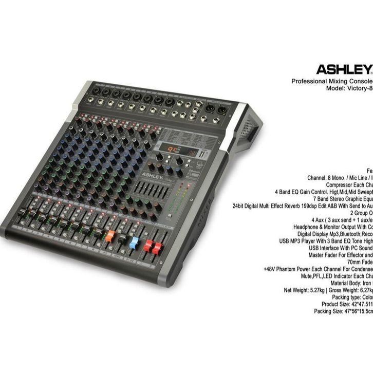 Mixer Audio Profesional ASHLEY Victory8 Victory 8 - 8 Channel + Bluetooth + USB + Efek Digital 24Bit