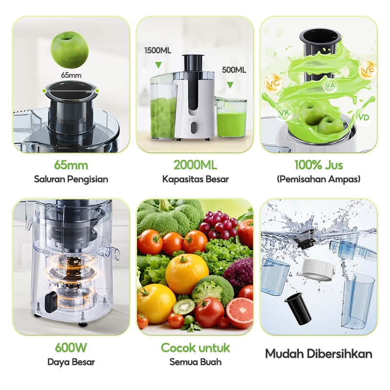Slow Juicer 1000ML Pembuat Jus 65MM Large Kaliber Blender Jus Mesin Juicer Extractor Pemisah Ampas