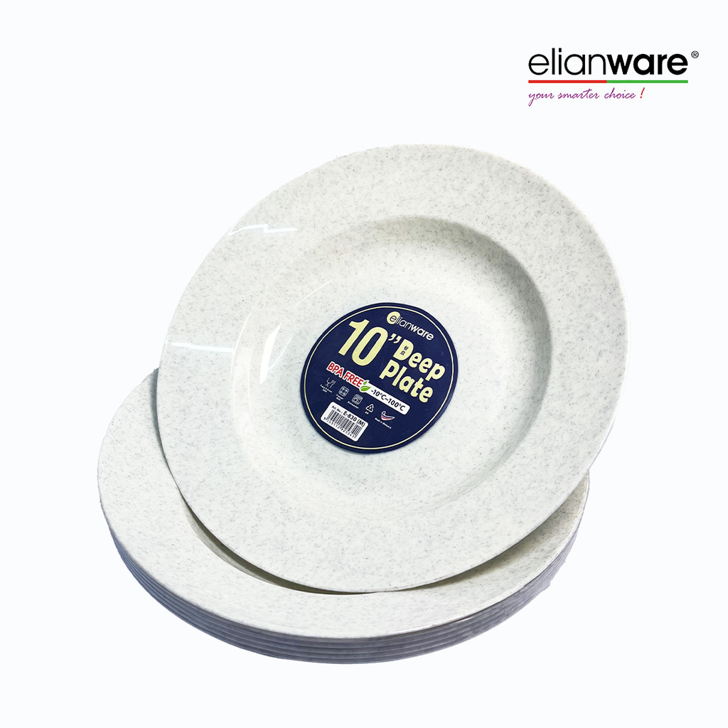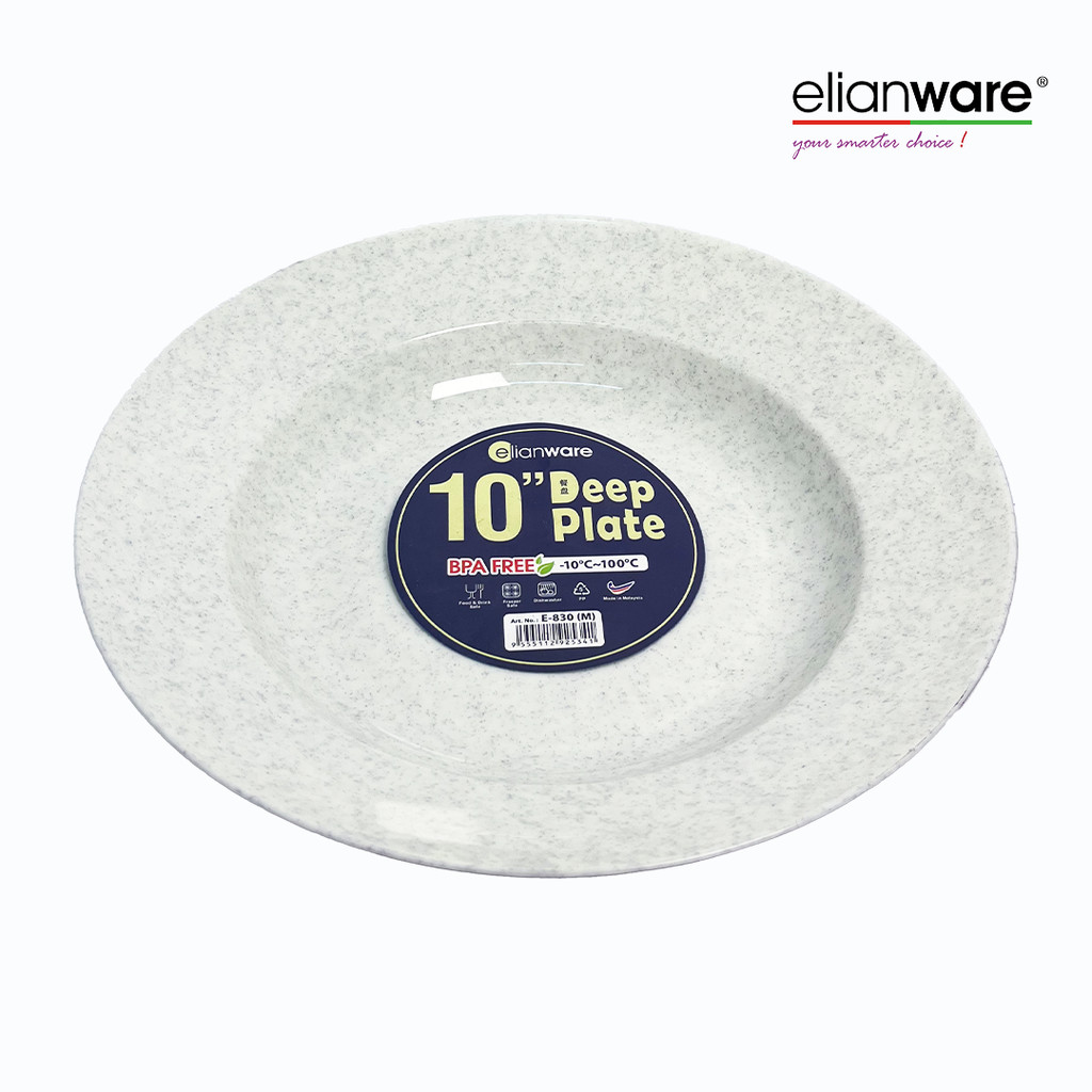 Elianware (6 PCS) 10” inch Marble Deep Plate Rice Plate BPA Free & Food Grade, E-830/M