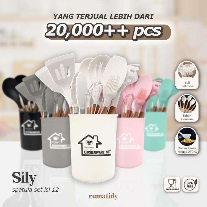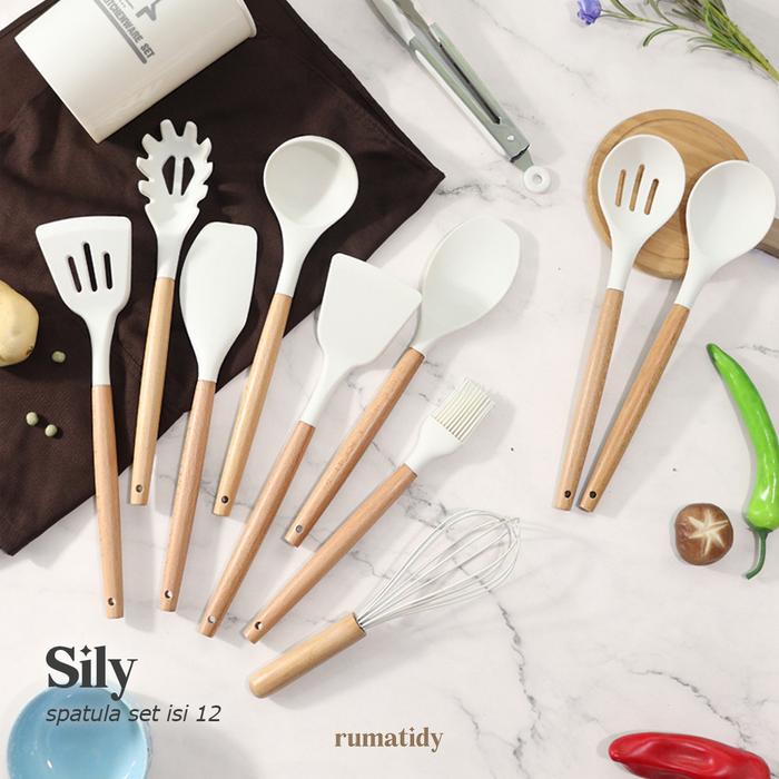 DP 0 SILY SPATULA SET 12PCS ALAT MASAK SILICONE SODET STEAK CLIP SET OIL BRUSH KITCHEN COOK