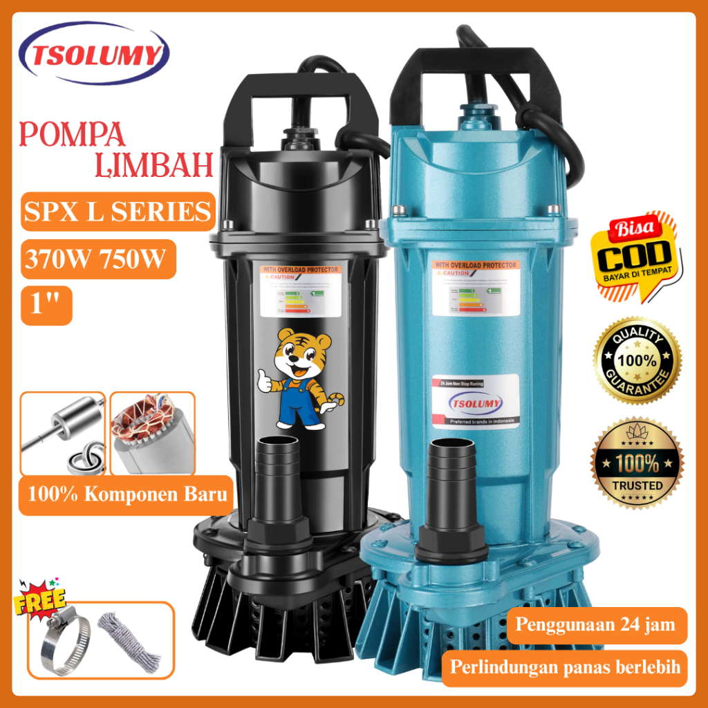 Tsolumy Pompa Celup Air Kotor SPX370-750L Submersible Pump 1 Inch Pompa Kolam Ikan / Banjir