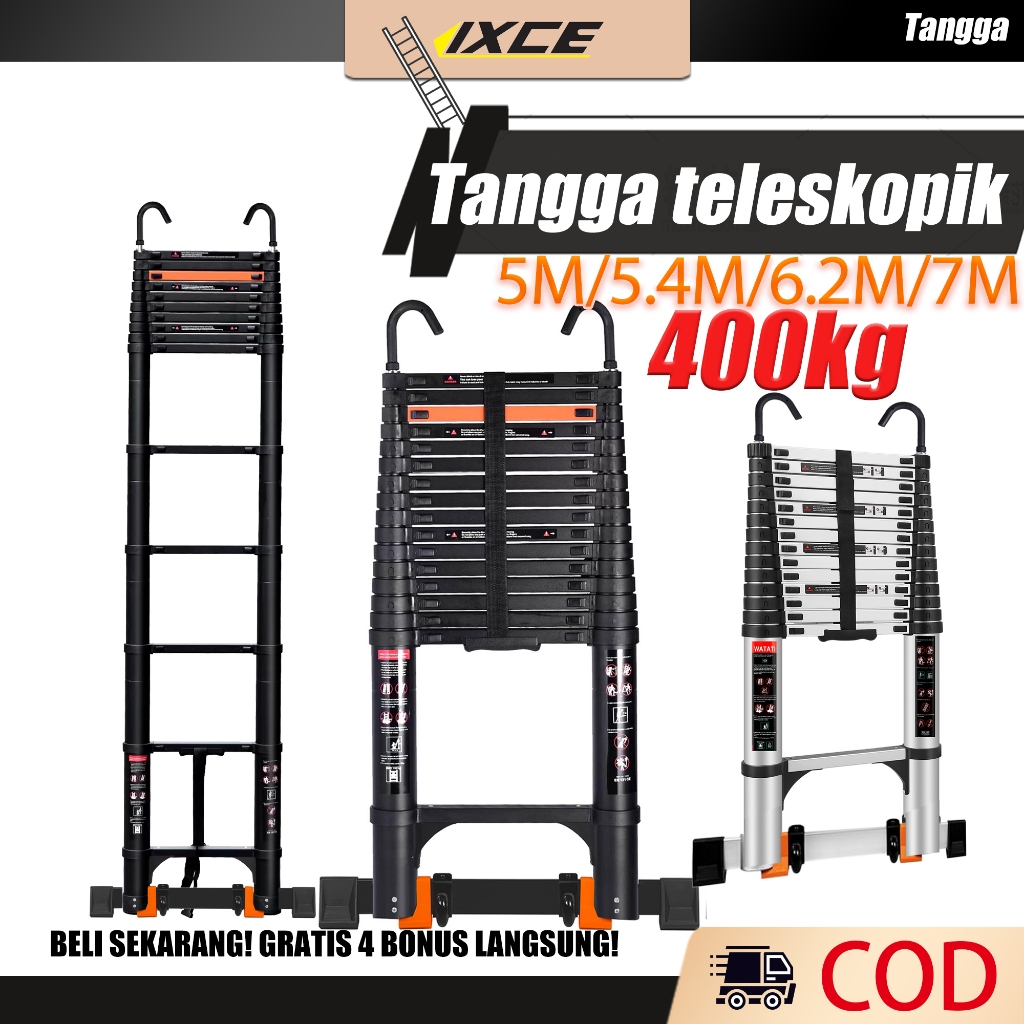 Tangga Telescopic Import - Roda Geser & Pengait, Muatan 200kg 5/6.2/7M Gratis Ongkir
