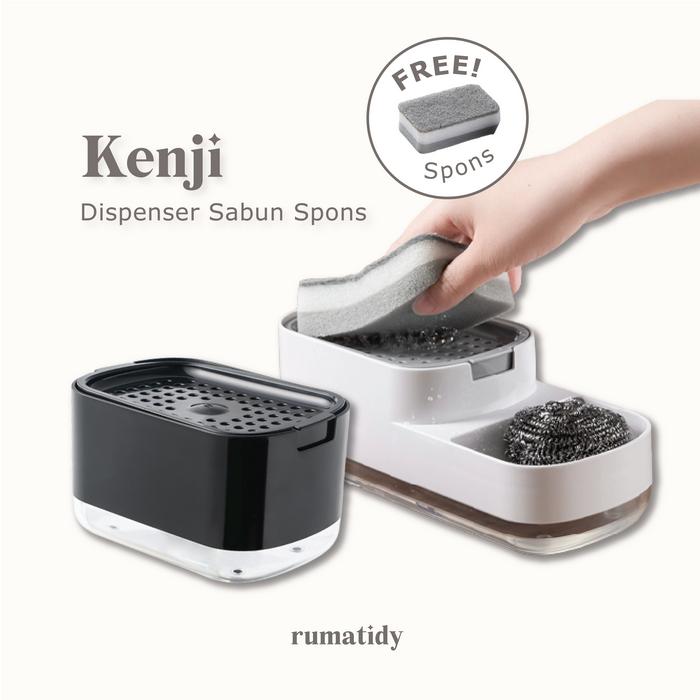 DP 0 KENJI DISPENSER SABUN SPONS TEKAN BUSA WADAH SPONS CUCI PIRING PUTIH L + SPONS