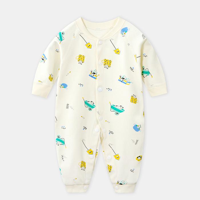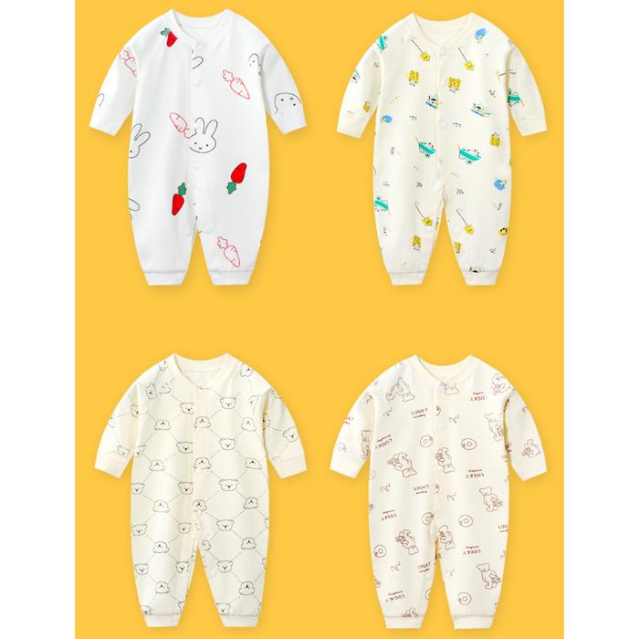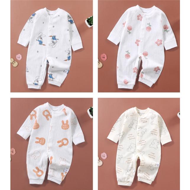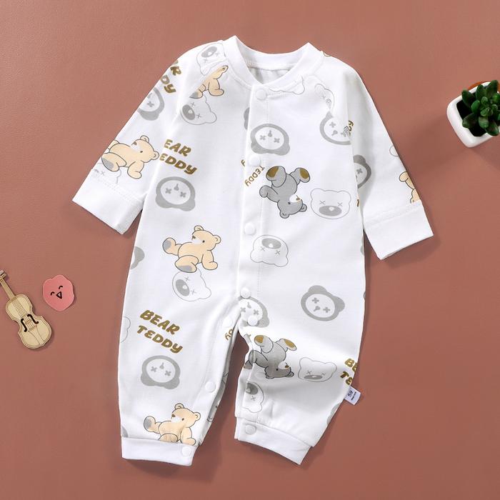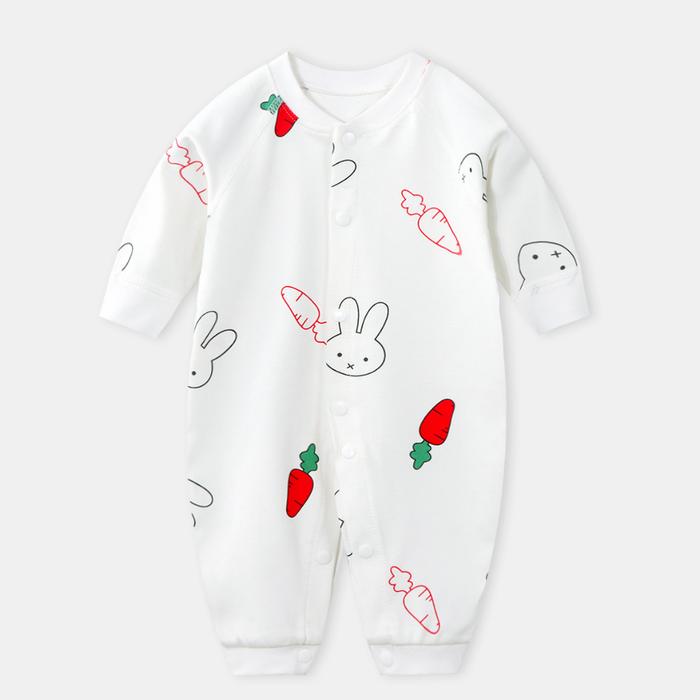 Mibaby Bodysuit/Jumpsuit Lengan Panjang Dengan Kancing Tengah/Jumper Katun Bayi - Kelinci Putih, 59 (0-3 Bulan)