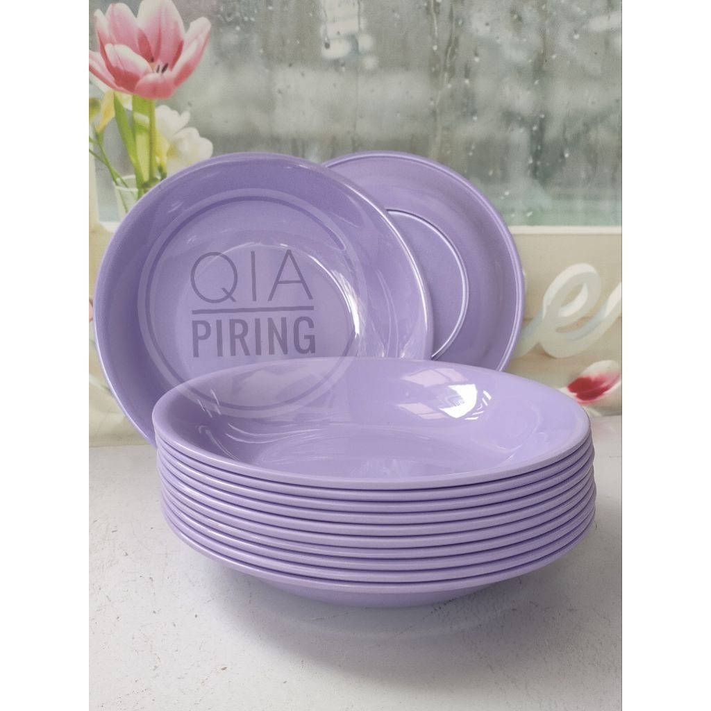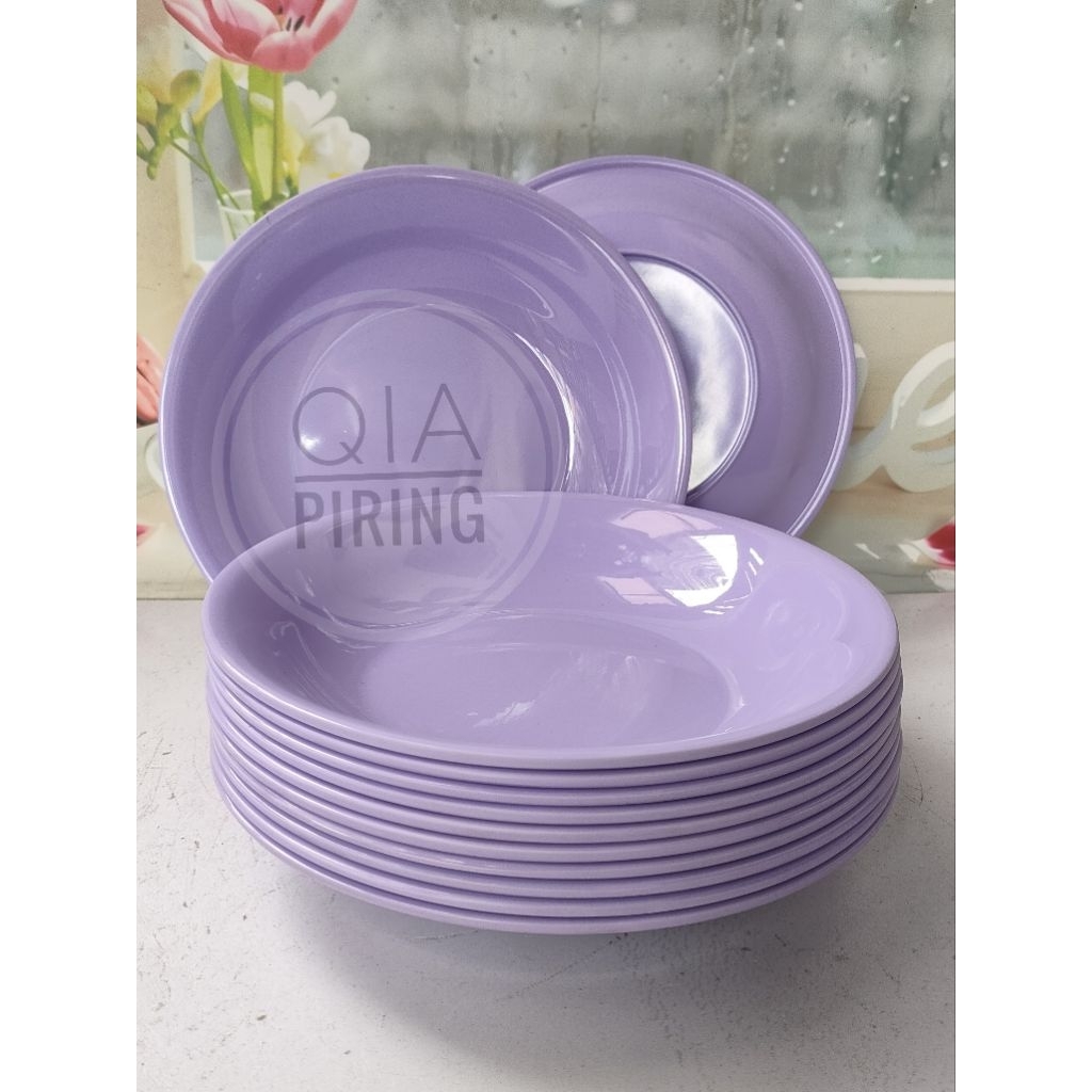 piring makan bulat cekung melamine polos ungu Lilac bebas BPA SNI tebal kuat tahan panas