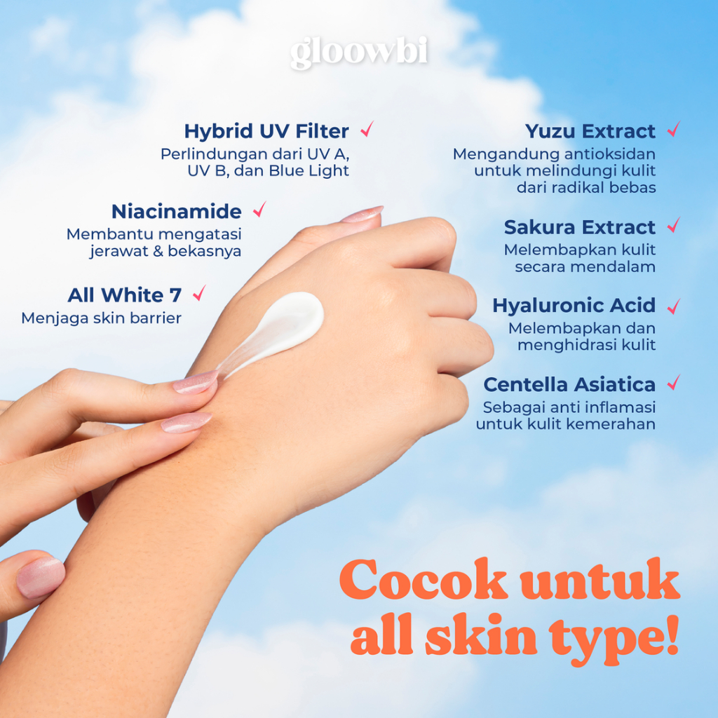 Sunscreen Gloow Be Glass Skin Hybrid Cerah Mencegah Minyakan Original