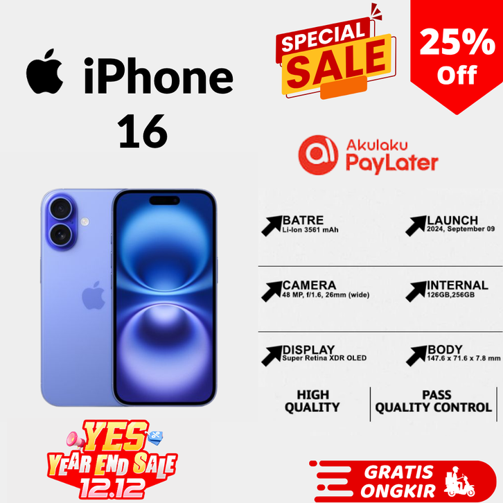 iPhone 16 Second Original Fullset Mulus Like New IP 16 128GB All Operator Normal Good Condition Bergaransi