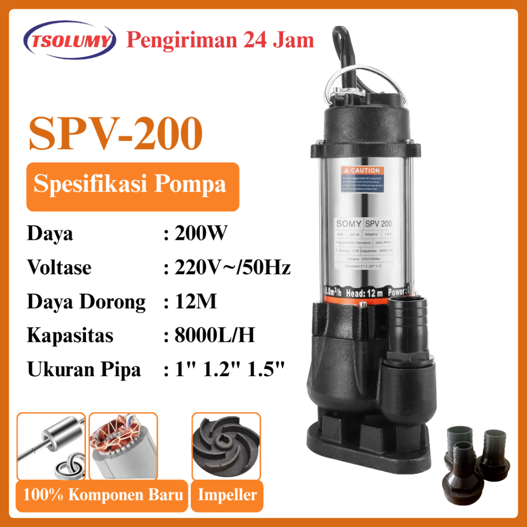Tsolumy Pompa Celup Air Bersih Kotor Limbah 200Watt Type SPV-200 Include 3 Output 1/1.25 / 1.5inch