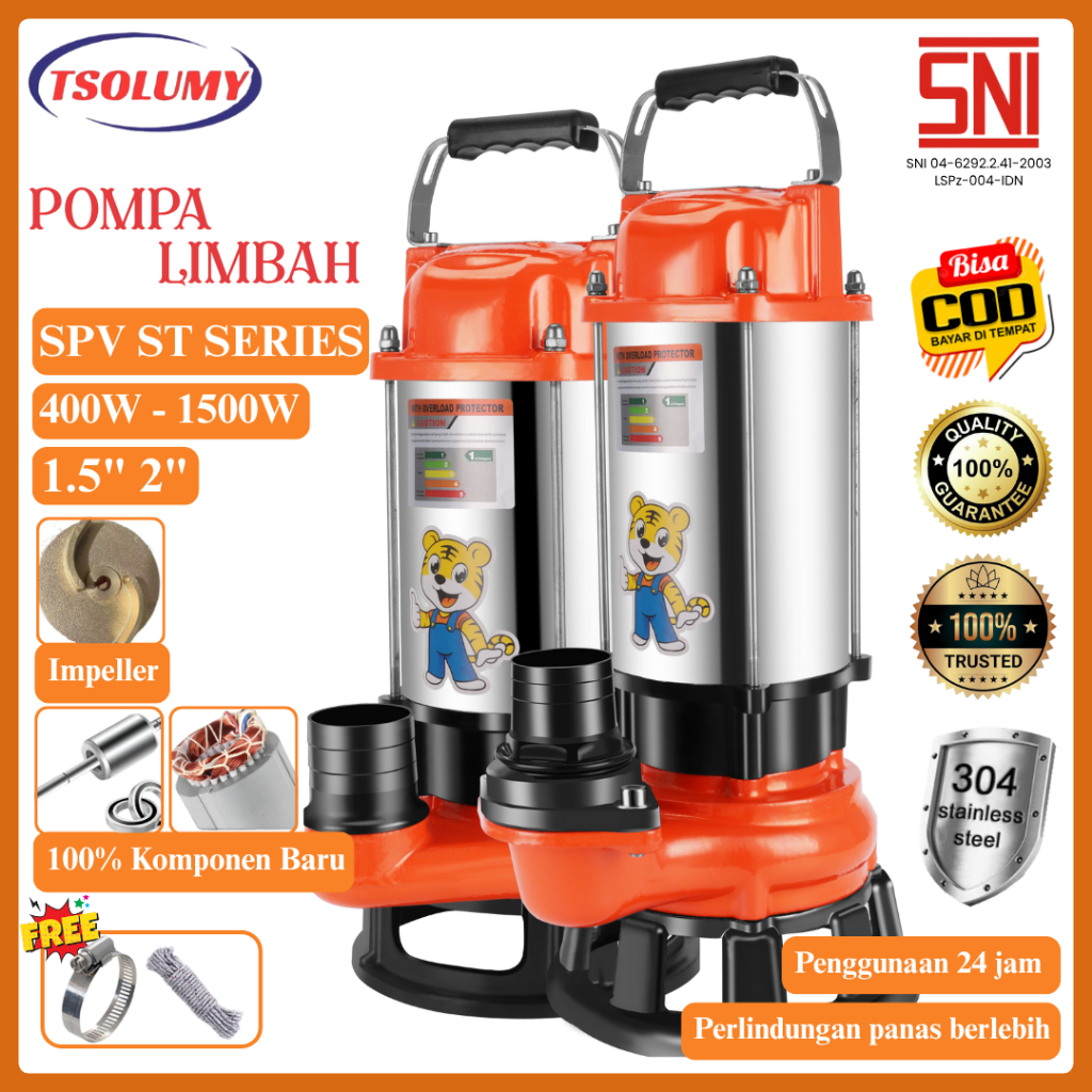 Tsolumy Pompa Celup Air Kotor 400-1500W Stainless Submersible Pump Pompa Kolam lkan Banjir