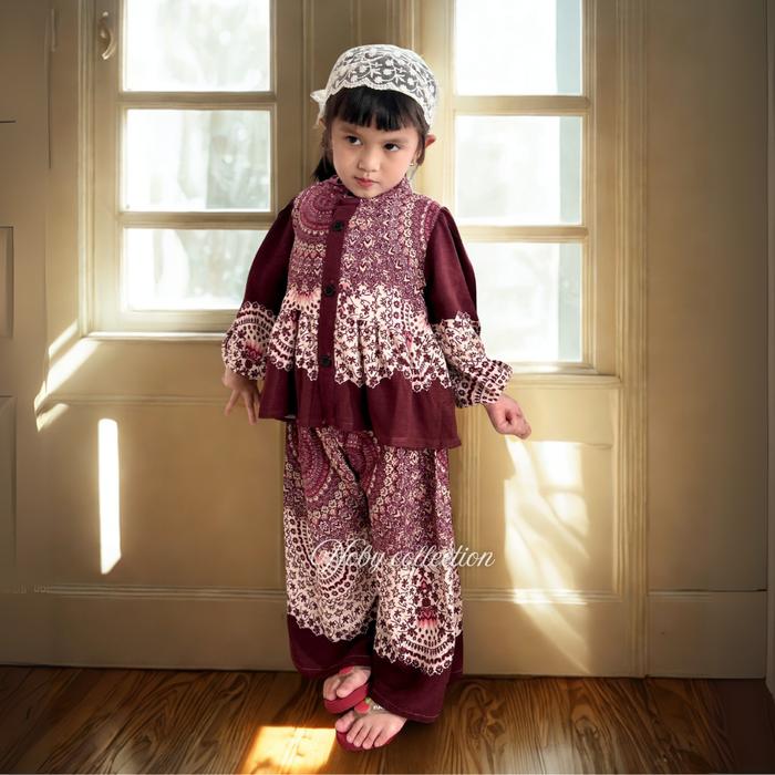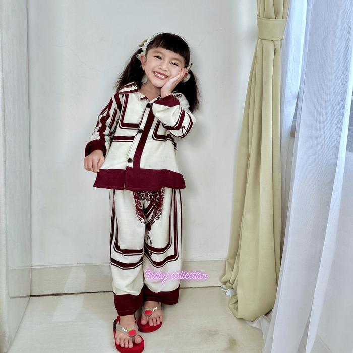 Noby Collection-Setelan Celana Kemeja Rayon Viscose Anak Perempuan Viral 2025 Motif Baju Fashion 1 Set Outfit Anak Kece