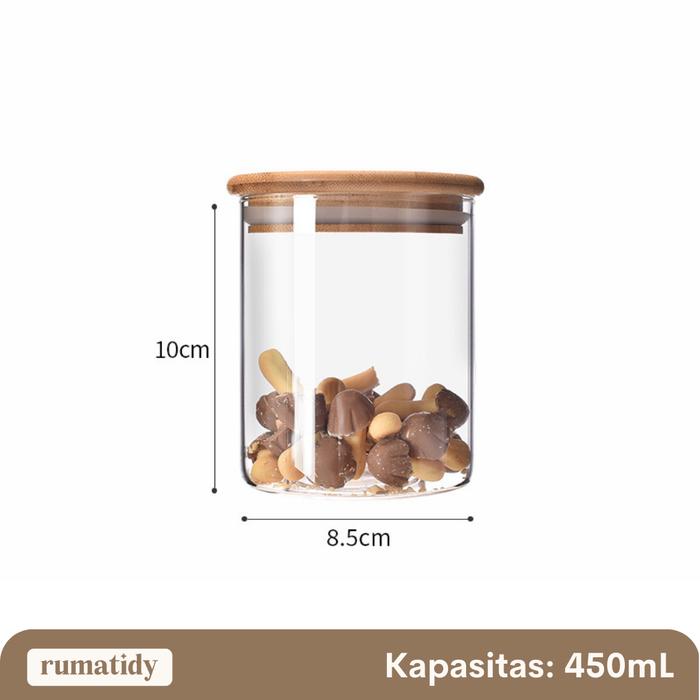 DP 0 [DIAMETER 85CM] SATUAN MOJI TOPLES SNACK KACA BULAT TUTUP KAYU BOROSILICATE DIAMETER 8