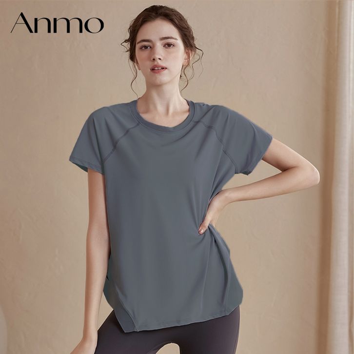 ANMO-Kaos olahraga wanita kaos olahraga lengan pendek kaos olahraga kaos lari baju atasan wanita