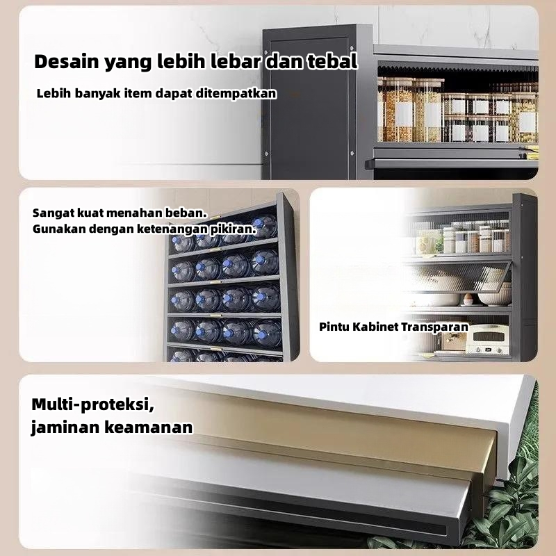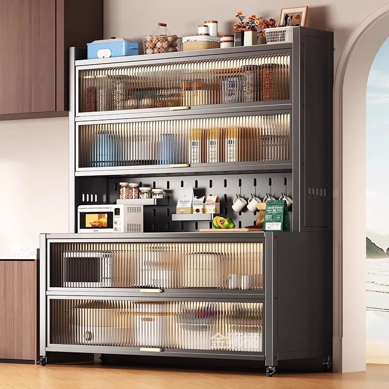Lemari Dapur Rak Dapur Besi Serbaguna Rak Dapur Dengan Pintu Dapur Kabinet Penyimpanan Rak Piring Tertutup Lemari Dapur