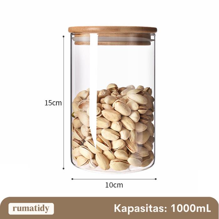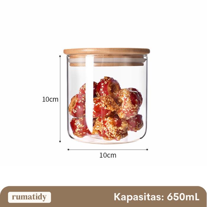 DP 0 [DIAMETER 10CM] SATUAN MOJA TOPLES SNACK KACA BULAT TUTUP KAYU BOROSILICATE DIAMETER 1