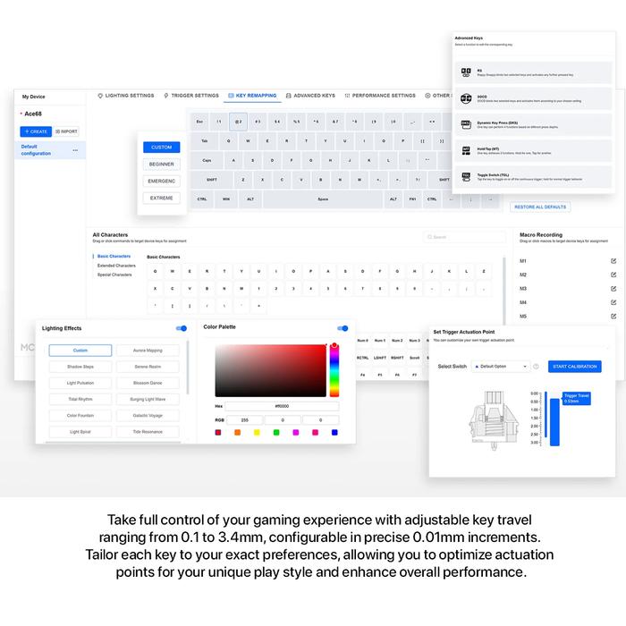 FLASH SALE MCHOSE ACE68 HE HALL EECT WIRED MODE CONNECTION 65 PERSEN LAYOUT MECHANICAL RAPID TRIGGER KEYBOARD WHITE ICE BLUE SWITCH