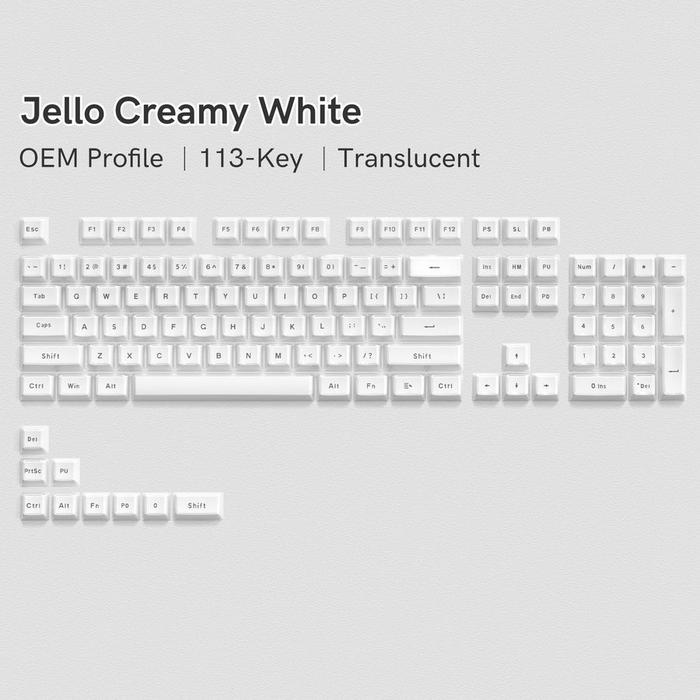 FLASH SALE XVX JELLO JELLY CREAMY WHITE TRANSLUCENT KEYCAPS 113 KEYS OEM PROILE MECHANICAL KEYBOARD SIDE PRINT