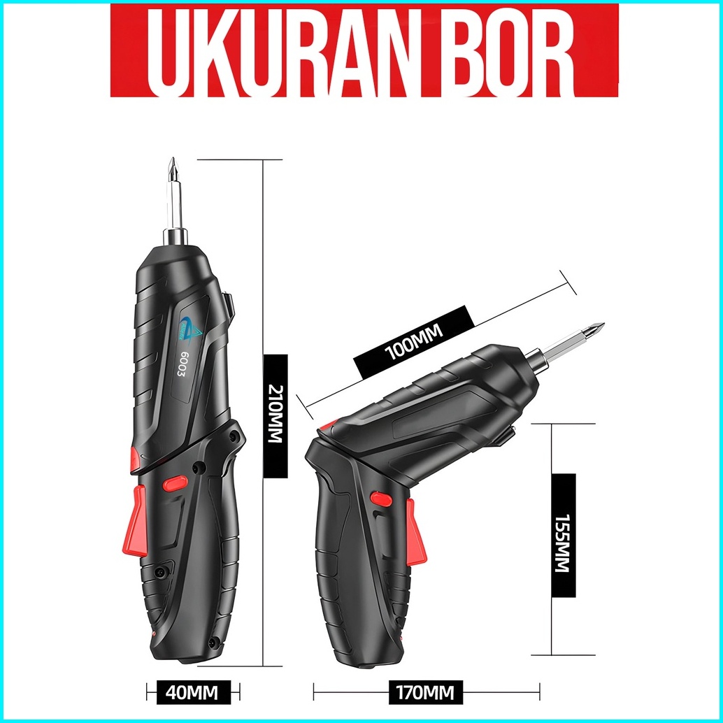 Suksestech Bor Screwdriver 1 Set Bor Tangan Drill Bolak Balik 37 Mata Bor 4 2 Volt 6003