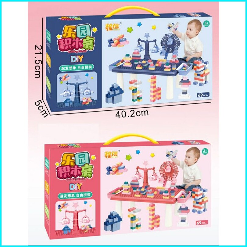 Tma 76pcs Mainan Balok Susun Theme Park Mini Set Meja Balok Meja Theme Park Mini