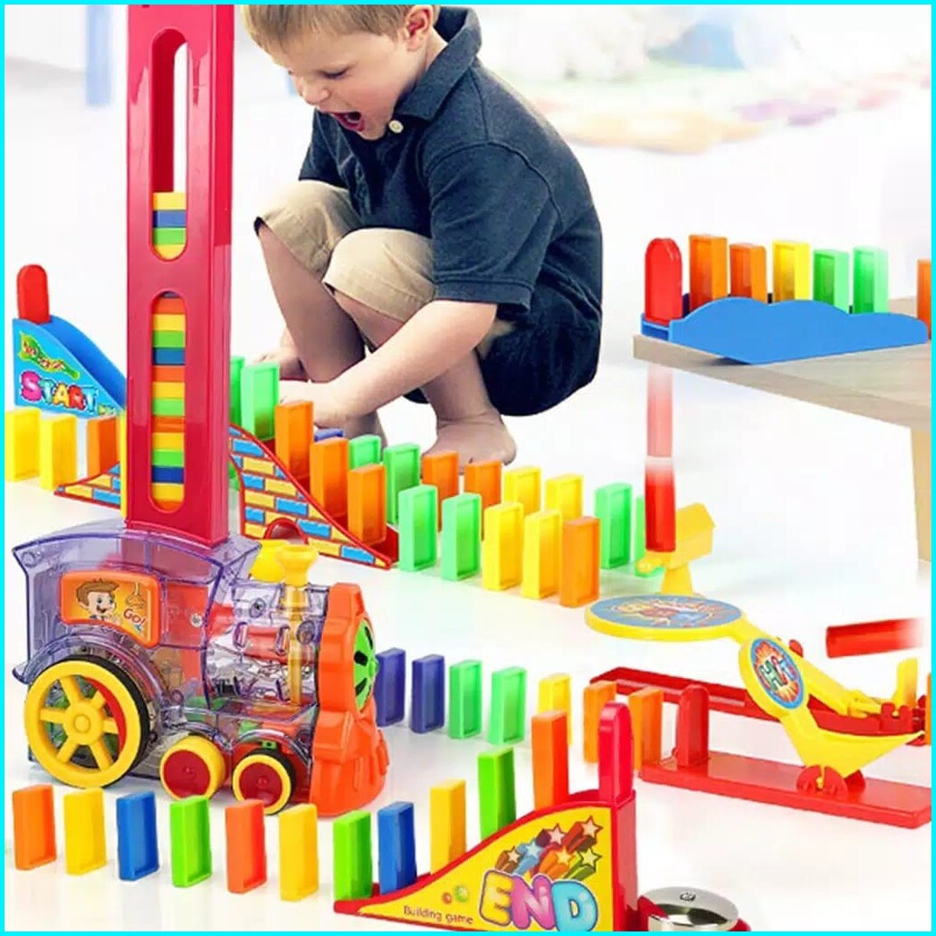 Mainan Anak Domino Train 80balok Kereta Api Penyusun Domino