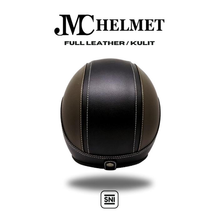FLASH SALE HELM BOGO RETRO COKELAT TUA FULL LEATHERKULIT KACA POLOS BIASA SNI PRIA WANITA KACA DATAR SMOKE