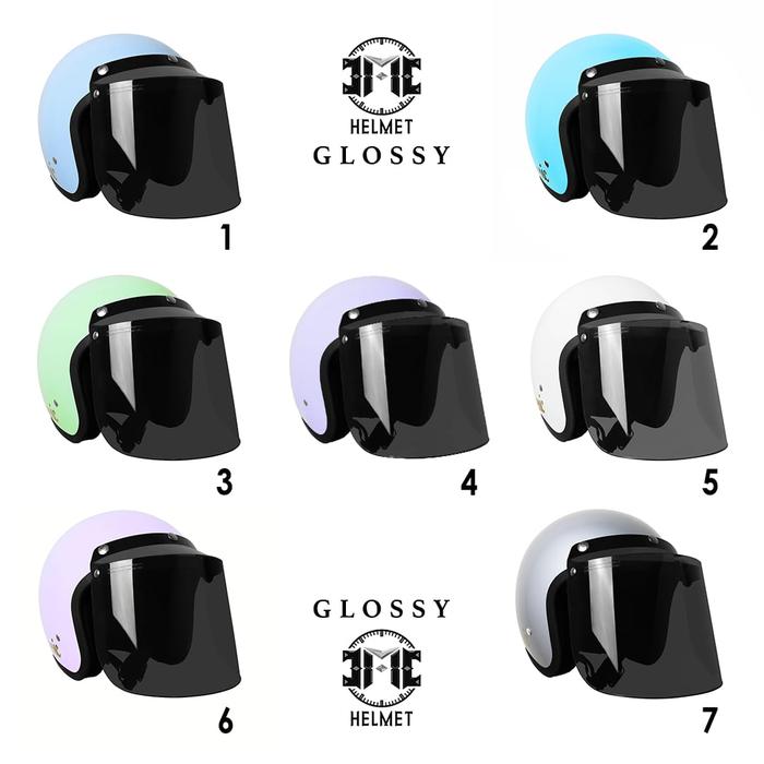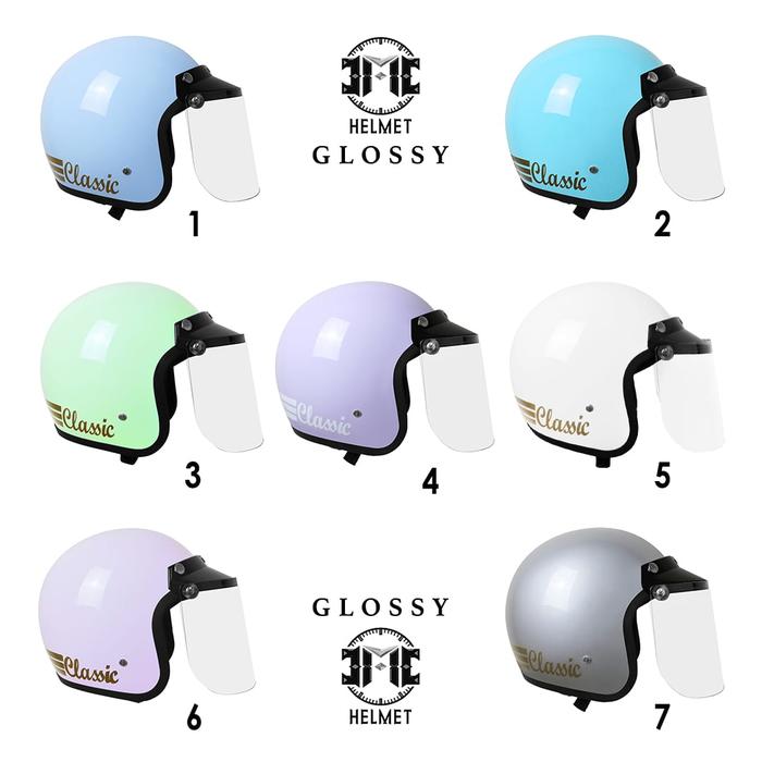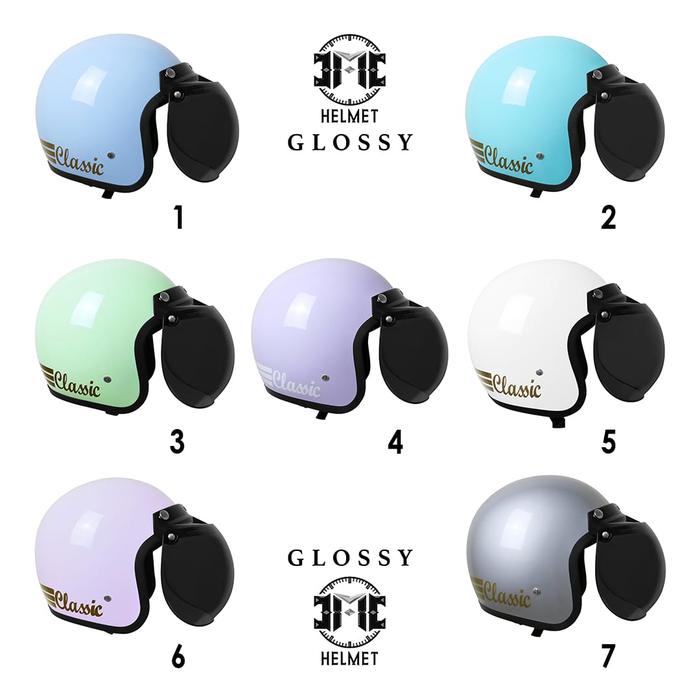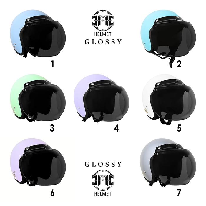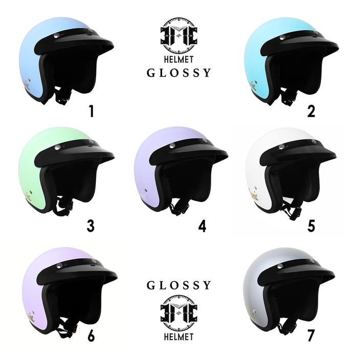 FLASH SALE HELM BOGO RETRO DEWASA CLASSIC PASTEL EDITION WANITAPRIA SNI KACA DATARCEMBUNGPET BIRU PASTEL, KACA DATAR